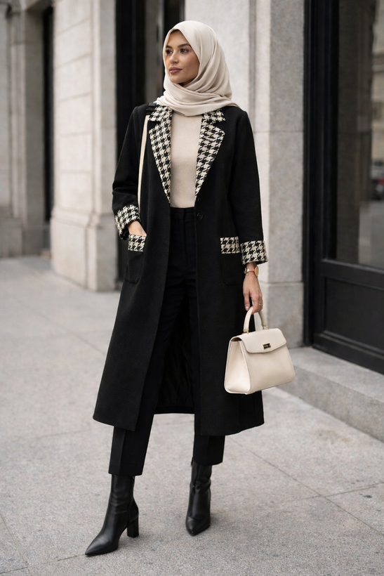 پالتو عبایی "مه آوا" با طراحی یقه و سرآستین پیچازی